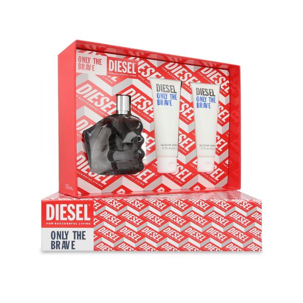 Estuche Diesel Only The Brave 3 Pzs, agua de tocador 75 ml, Gel corporal de ducha 100 ml, gel corporal de ducha 50 ml