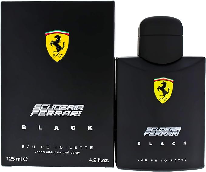 Ferrari Black Ferrari Black eau de toilette 125 ml Notas Ferrari Black de Ferrari es una fragancia de la familia olfativa Aromática Fougère para Hombres. Scuderia Ferrari Black se lanzó en 2013. Las Notas de Salida son cítricos, lima (limón verde), bergamota, manzana y ciruela; las Notas de Corazón son cardamomo, canela, rosa y jazmín; las Notas de Fondo son cedro, ámbar, almizcle y vainilla.